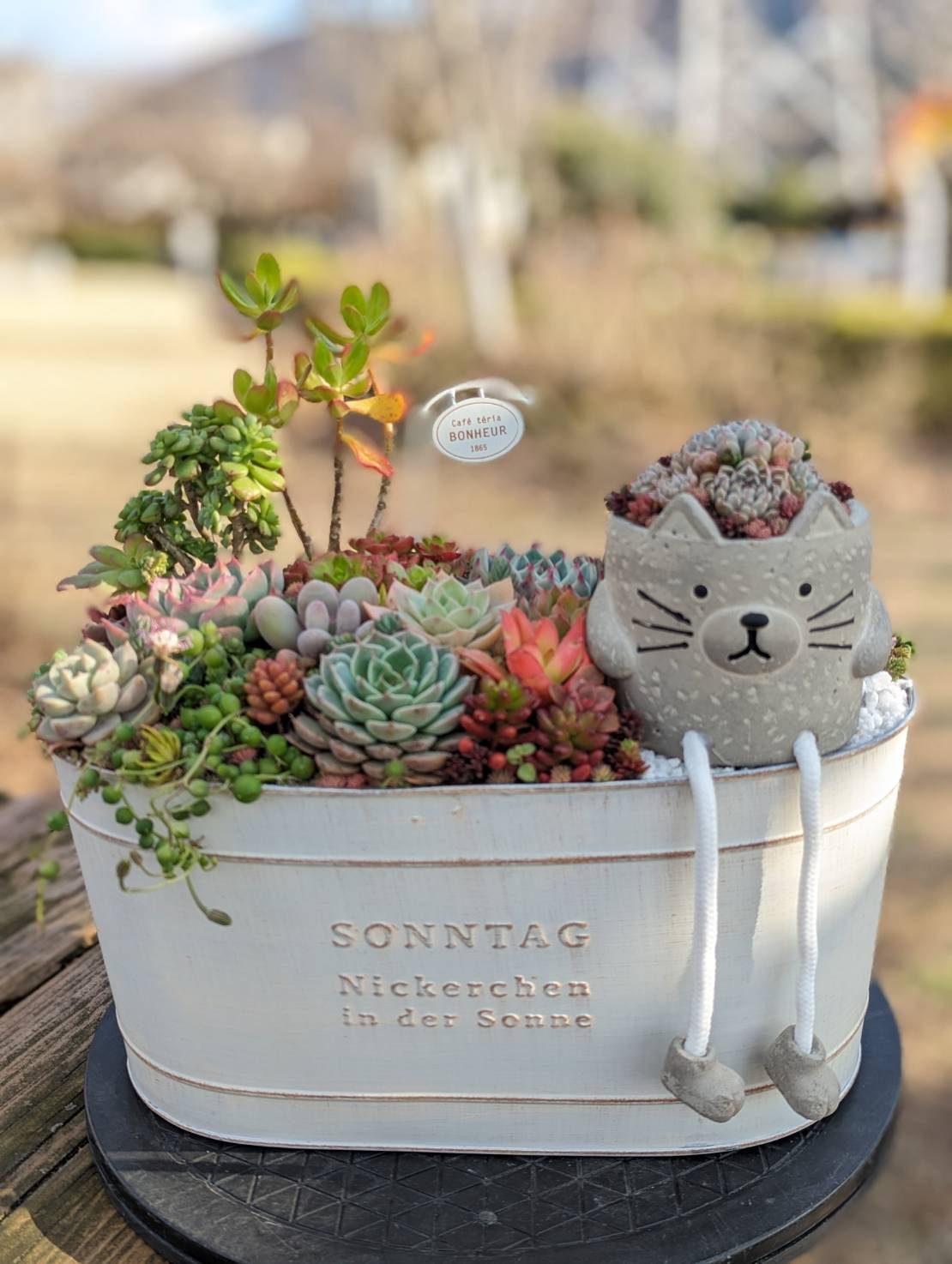 - 高低差を付けてかっこ良く仕上げたつもりです。からさないように水やりには注意してます。
