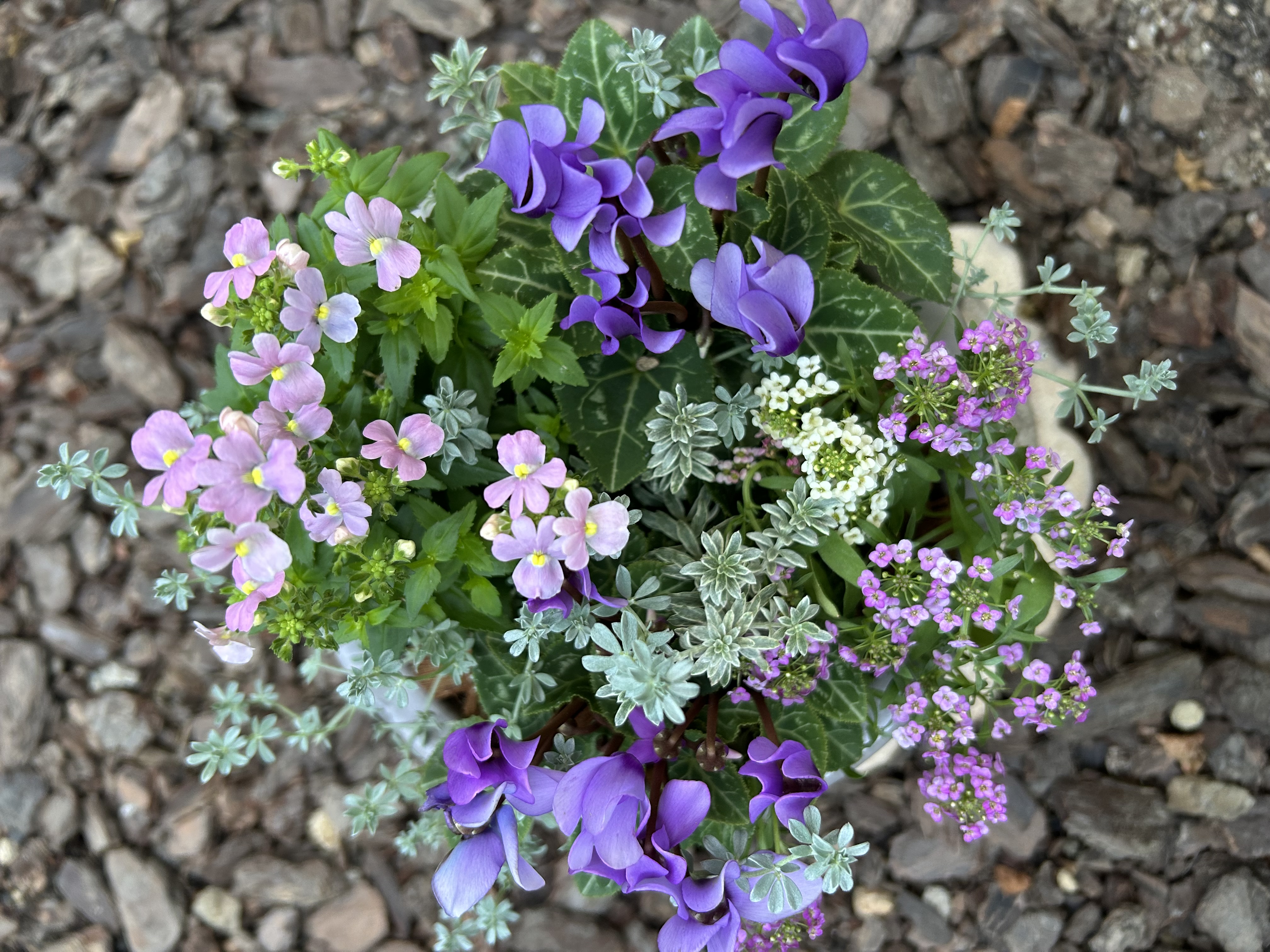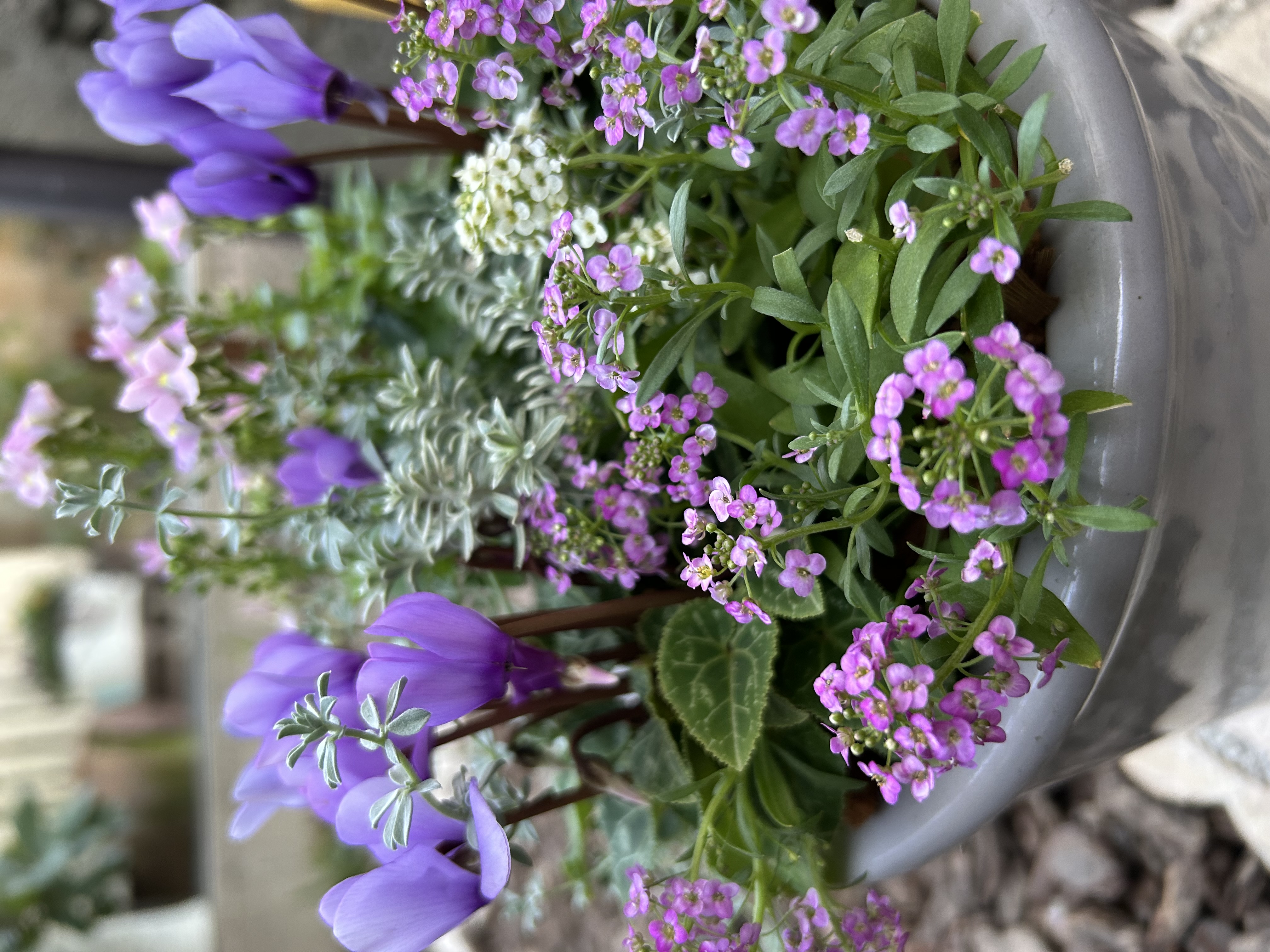 - ブルー(パープル)のシクラメンに出会って一目惚れしました。 このシクラメンに合う小花を探して合わせている時間がとても楽しかったです。
