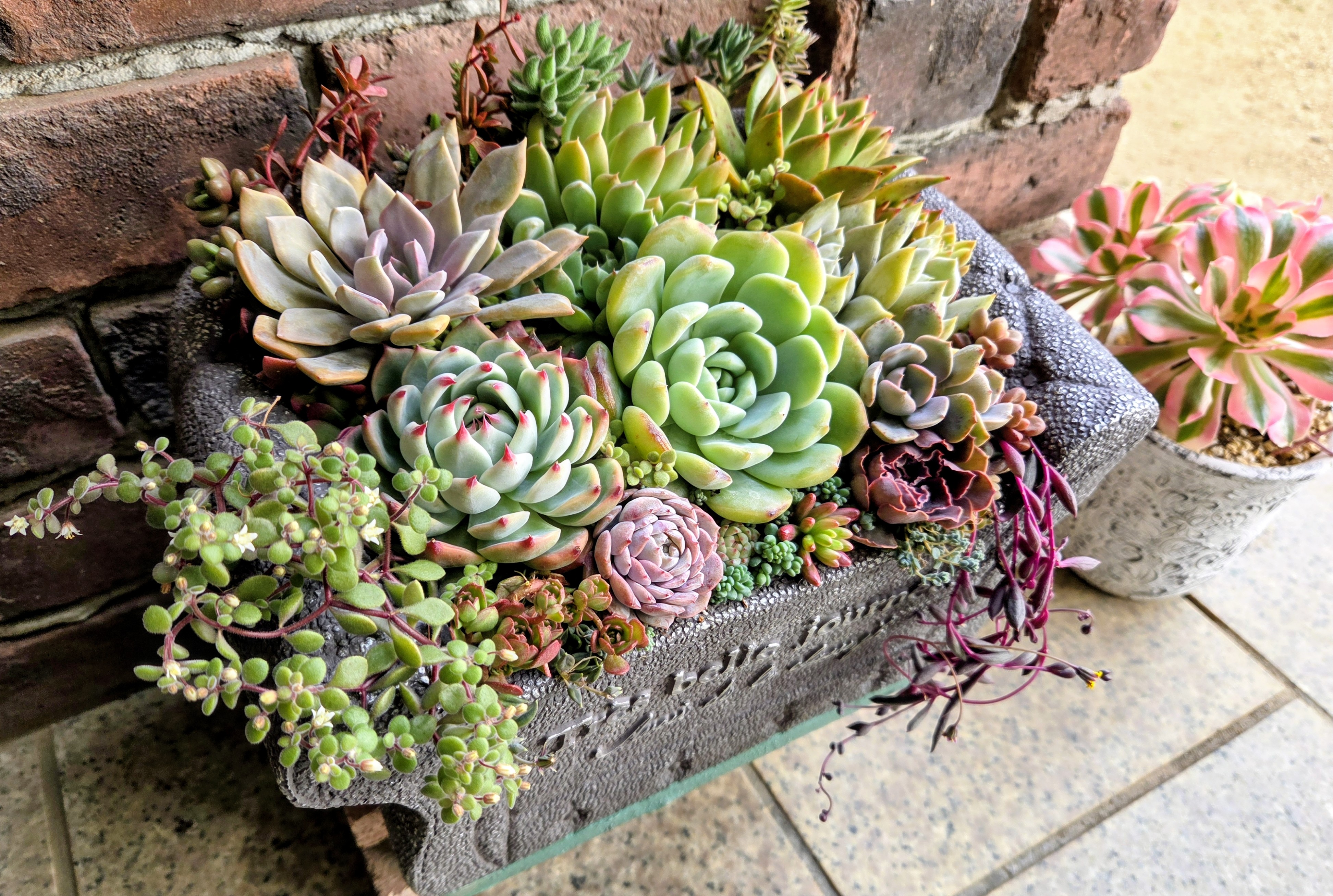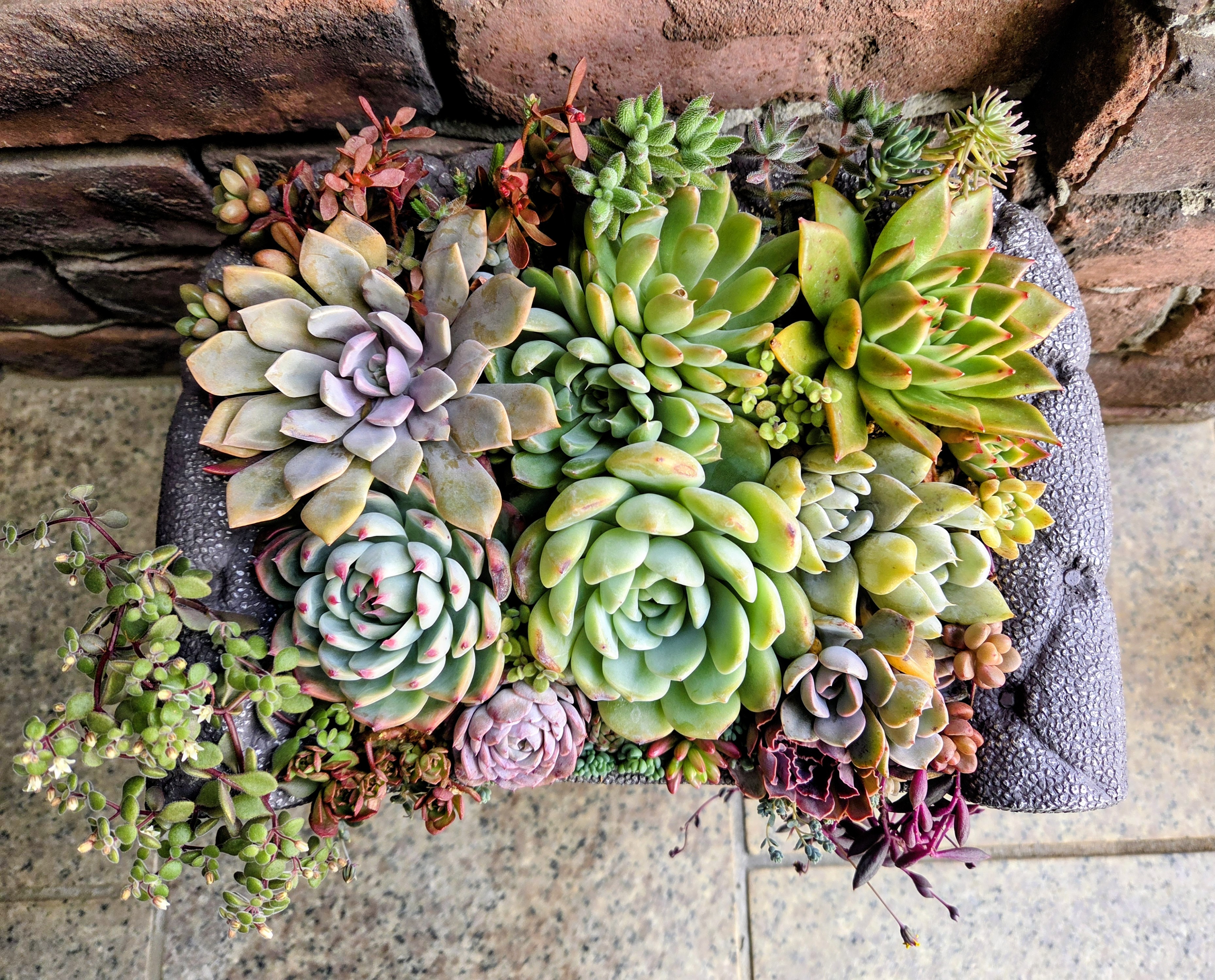 - プレゼントでもらったソファー型の鉢に、色や形のバランスをみながら寄せ植えしてみました。寒くなり紅葉しはじめ、植えた時よりかわいくなりました❤