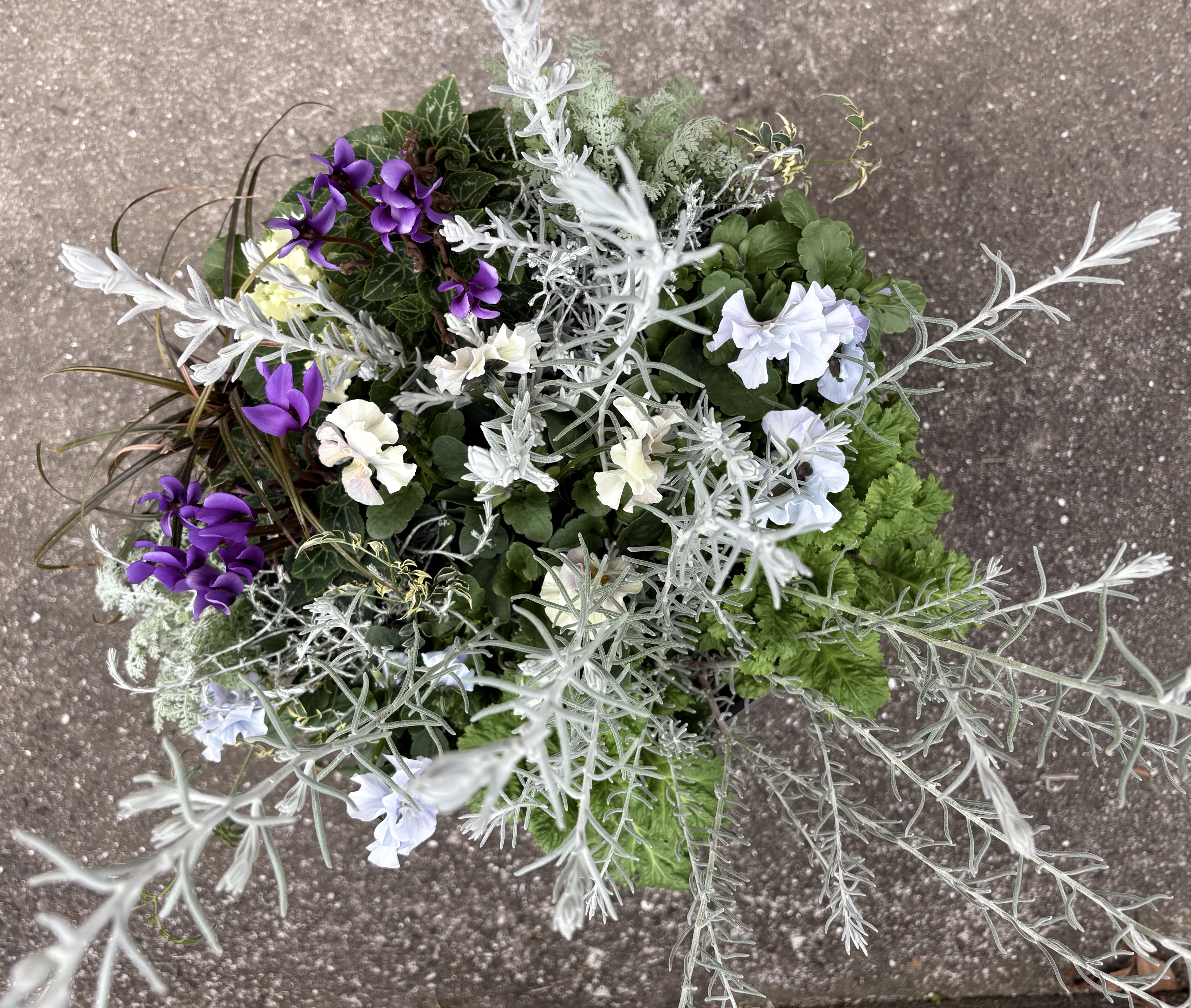 - エレモフィラ•ニベア、パンジー、シクラメン、レースフラワー、プリムラ•マラコイデス、ハボタン、ハゴロモジャスミン、プラチーナ、ウンシニア•ルブラ