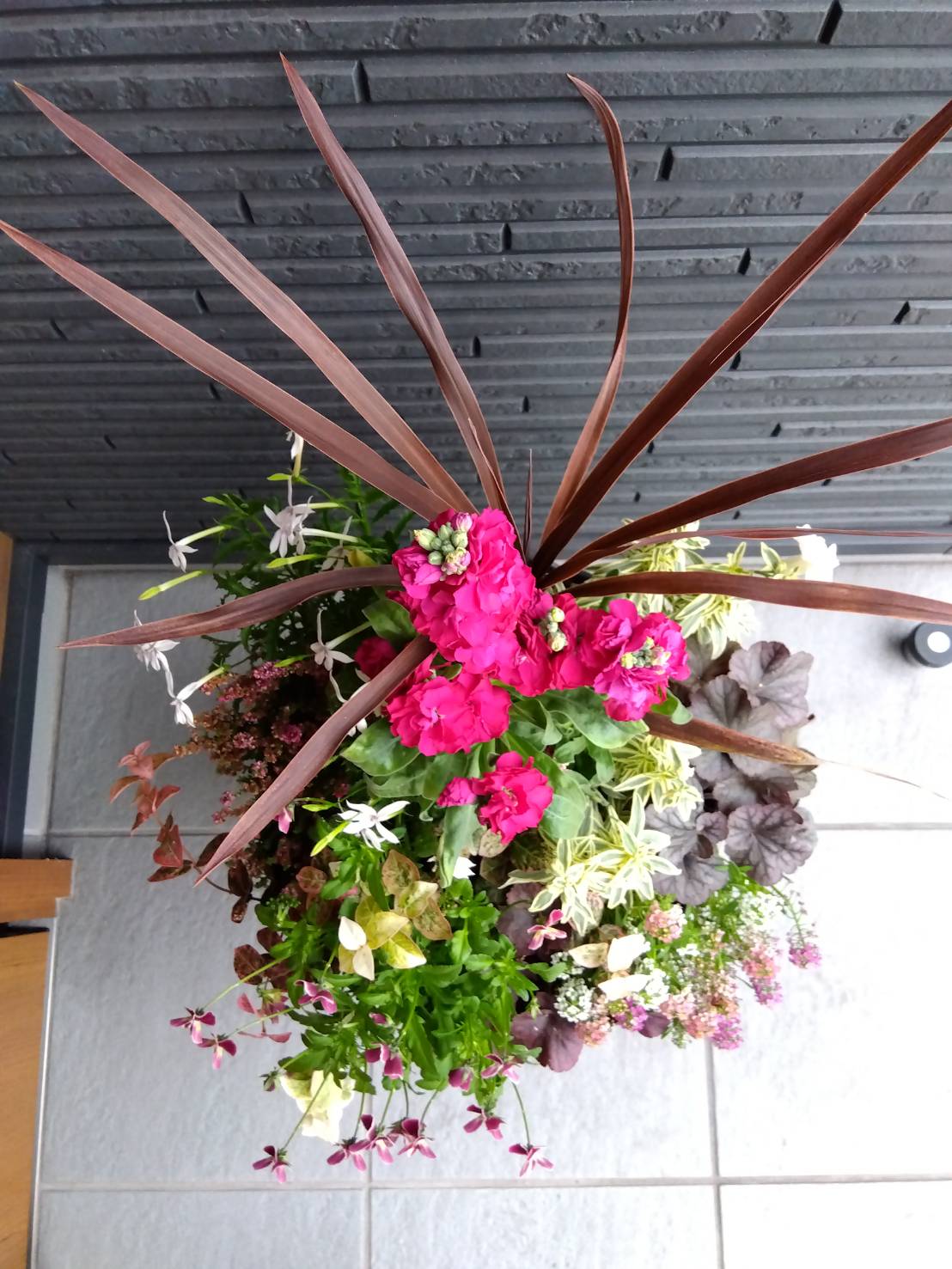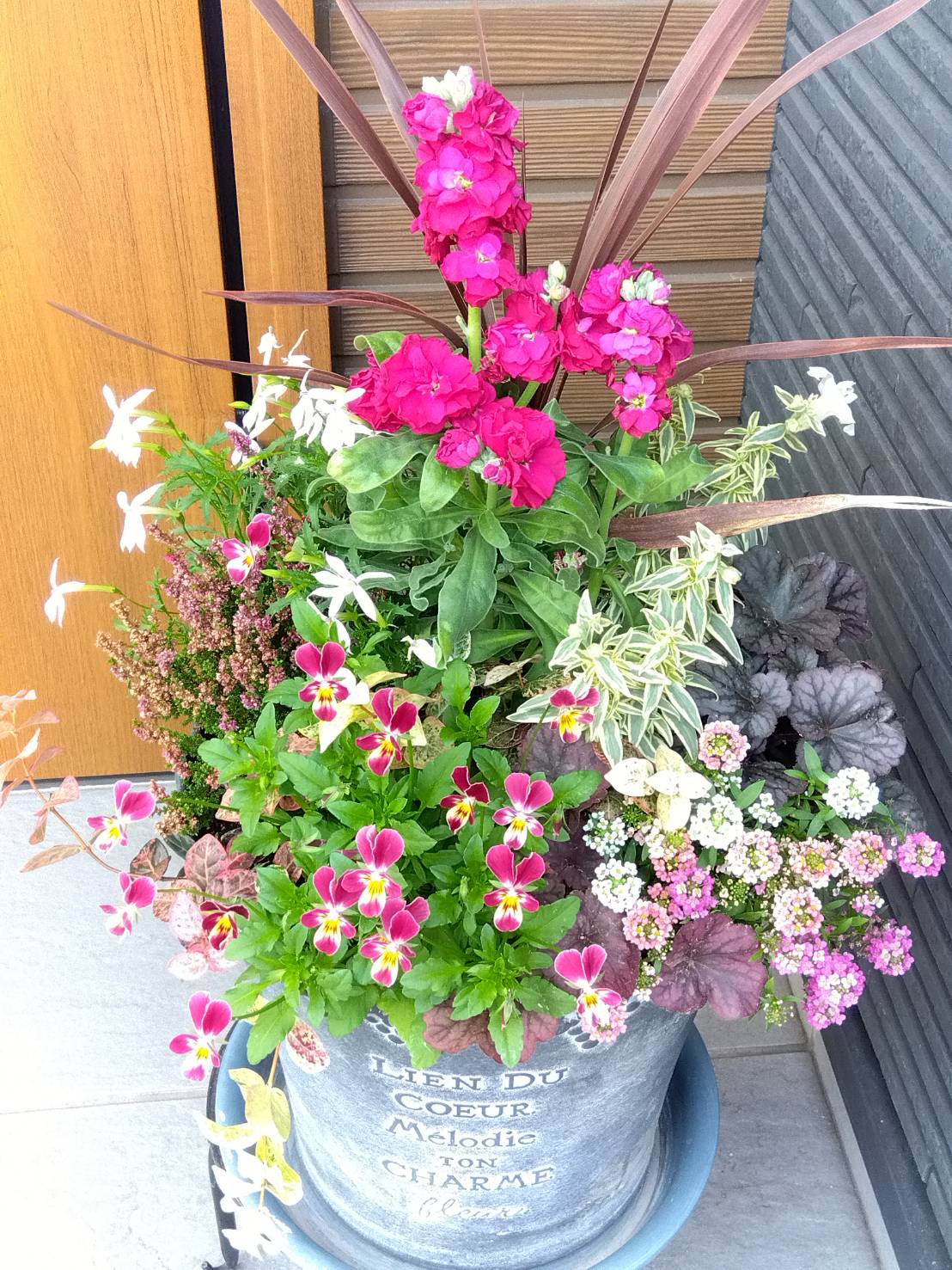 玄関先用に鮮やかなカラーの寄せ植えをつくりました。
