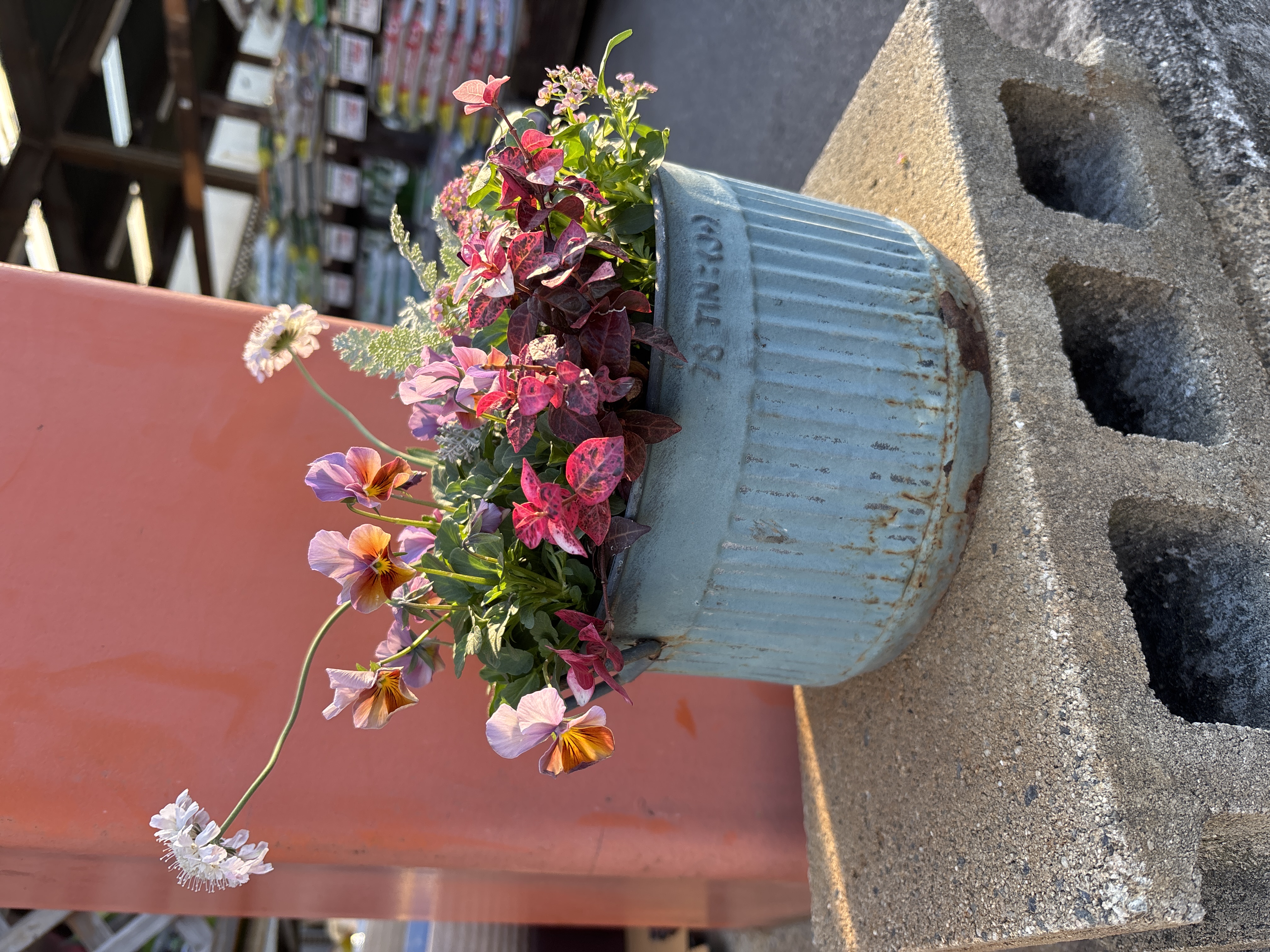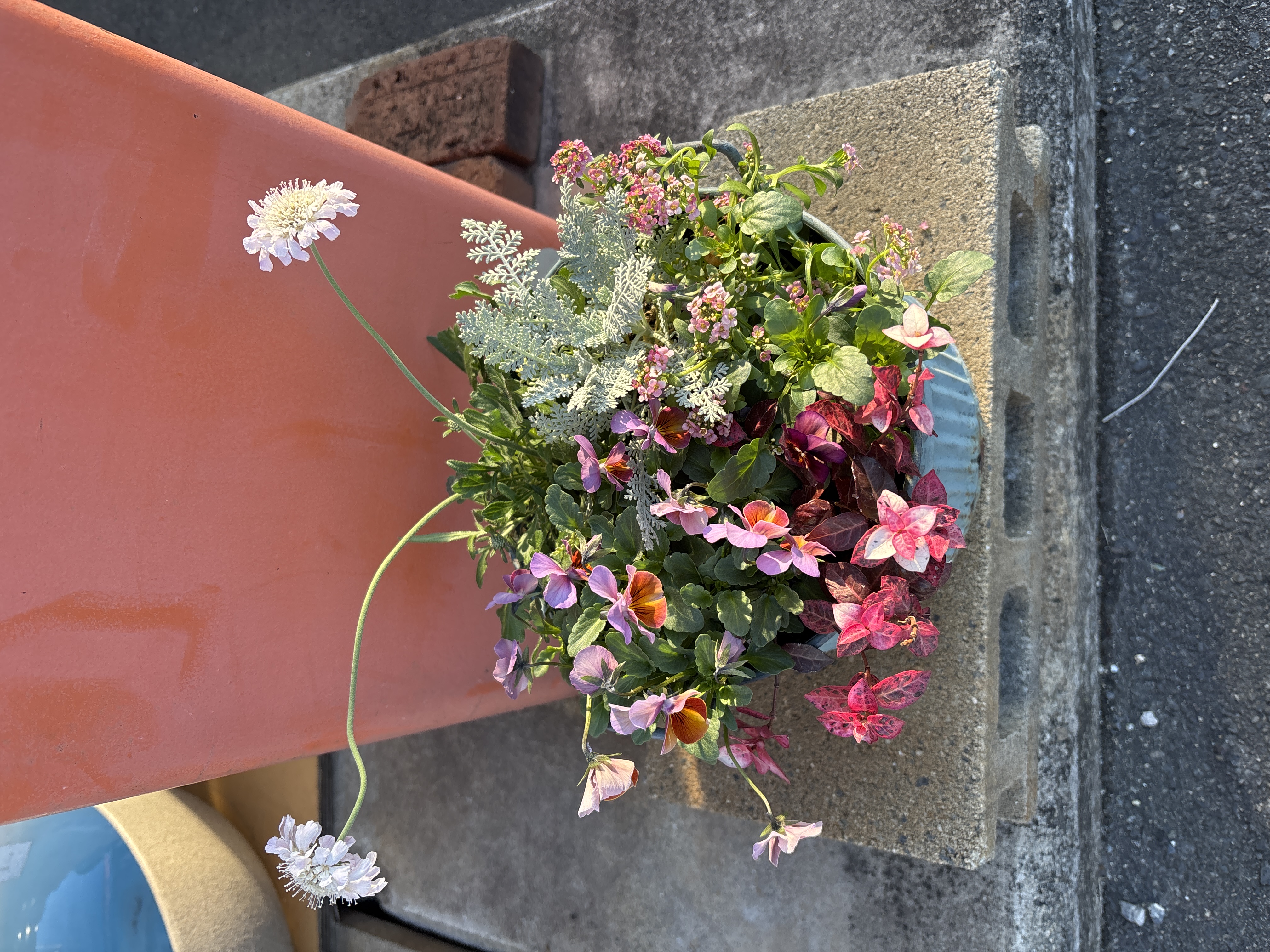 パンジー、初雪カズラ、アリッサム、スカビオサ、シルバーレース