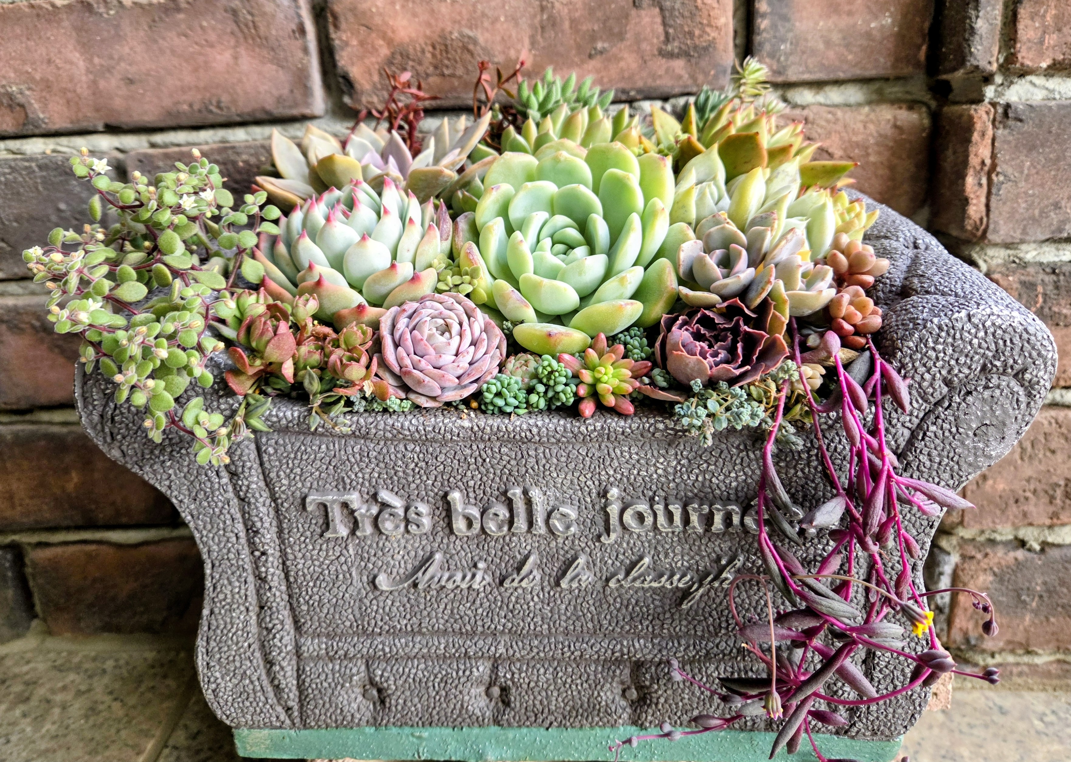 多肉植物部門 - プレゼントでもらったソファー型の鉢に、色や形のバランスをみながら寄せ植えしてみました。寒くな...
