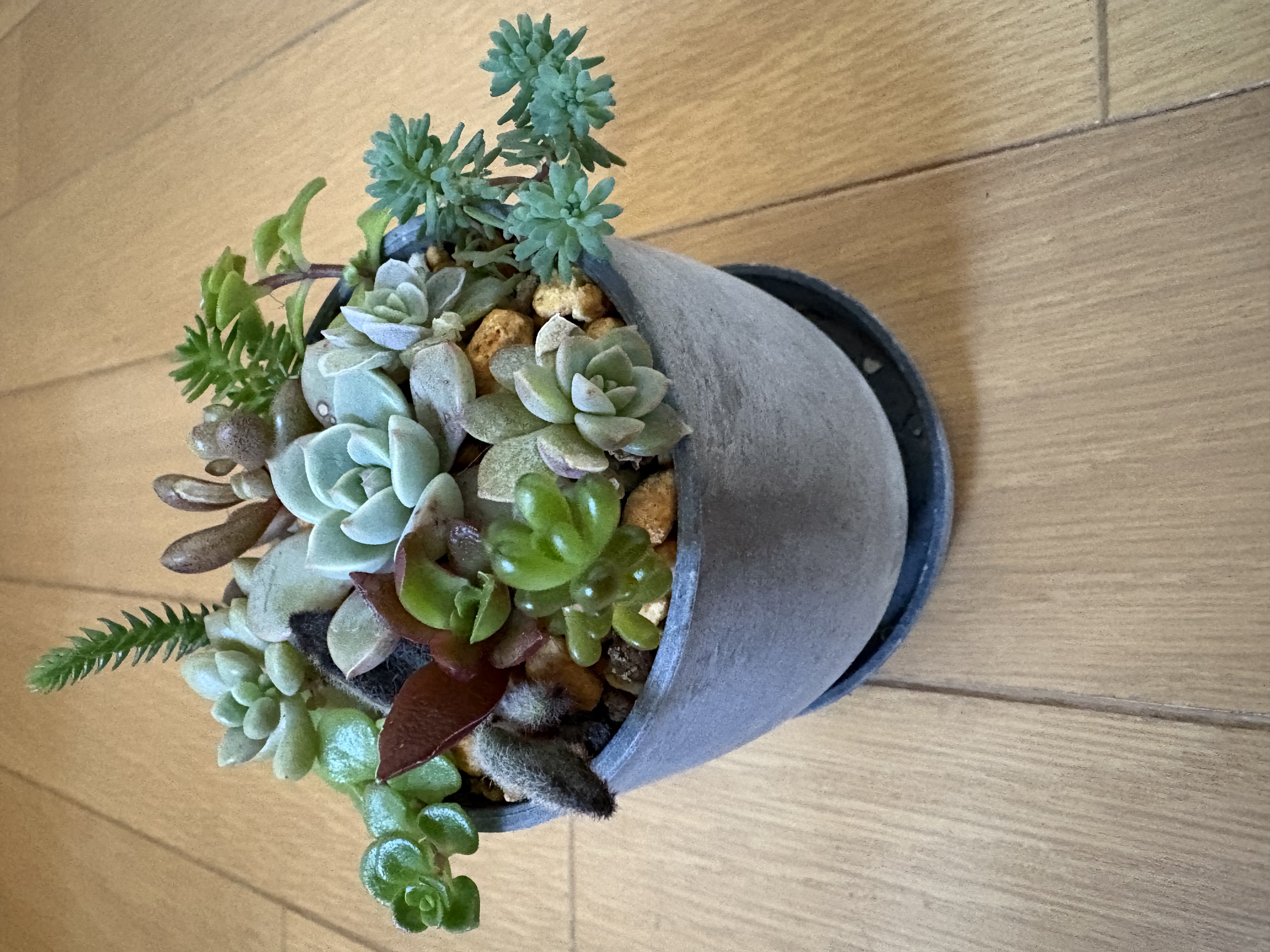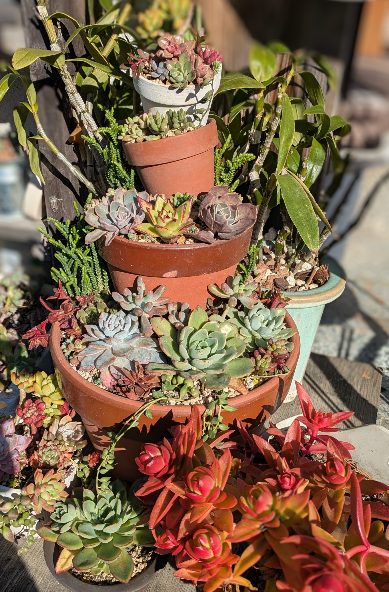多肉植物部門 - 植木鉢を重ねて寄せ植えをすることに初めて挑戦しました。夏にダメージを受けた多肉たちを寄せ集め...