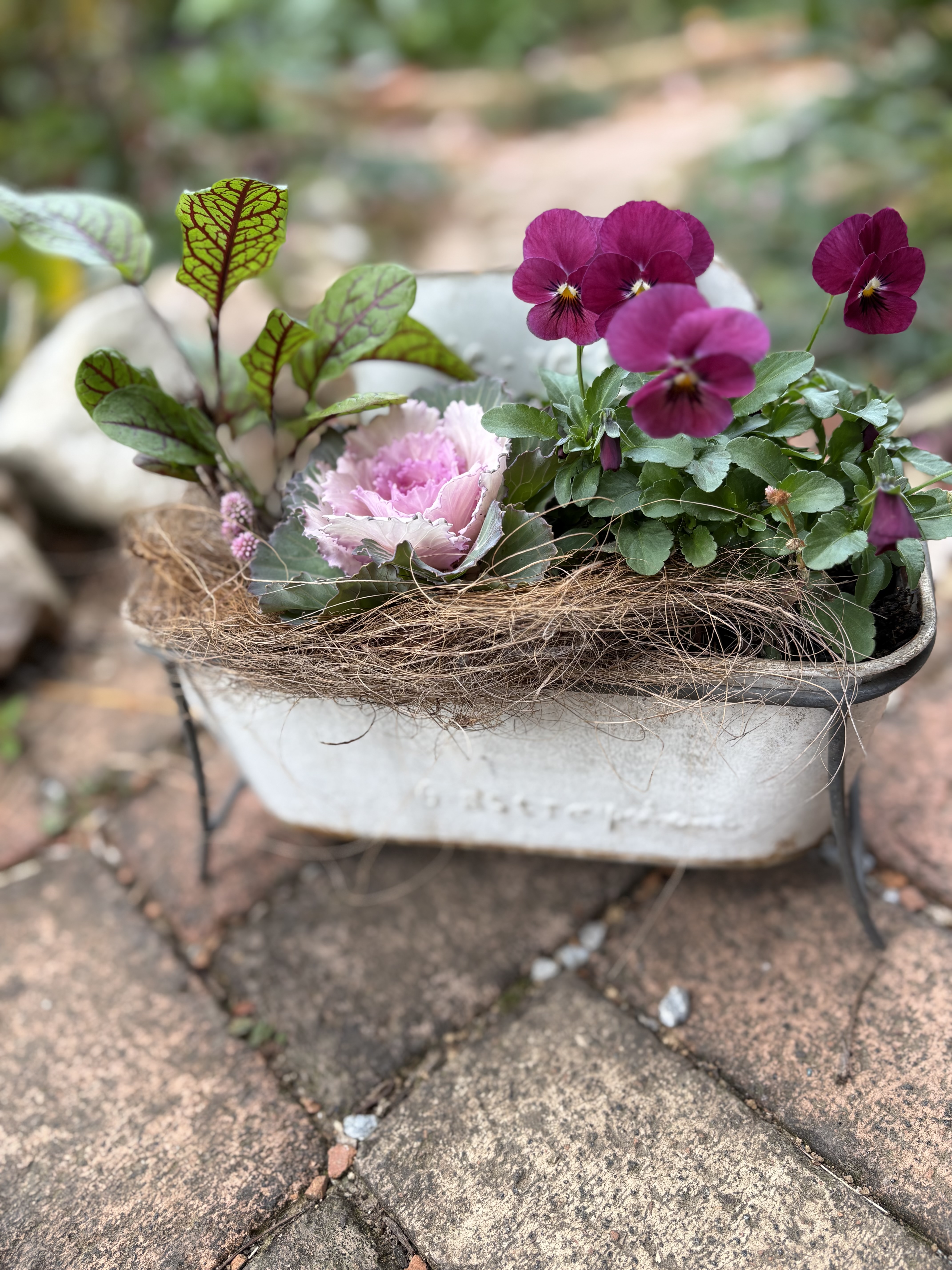 お花部門 - ビオラと葉牡丹の季節 好きなブリキのプランターに植えてみたくて、あえてピンク同士での組み合...