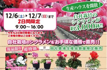 新着 2025.12.01生産ハウス特別開放!「シクラメン生産直売フェア」in赤磐農場